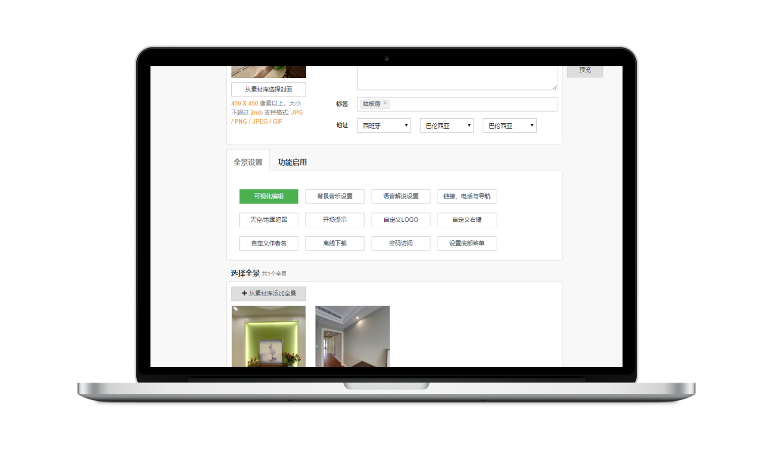 用户可以设置个数、行数不同的导航栏。我们提供丰富的icon库,也支持本地上传,DIY您与众不同的全景导航栏。